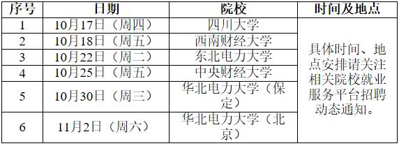 英大長(zhǎng)安保險(xiǎn)經(jīng)紀(jì)有限公司將于2019年10月赴以下院校開(kāi)展2020年高校畢業(yè)生校園招聘宣傳,行程安排如下: