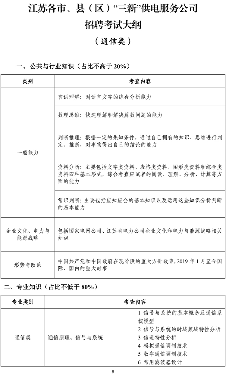2020江蘇各市、縣(區)“三新”供電服務公司招聘考試大綱(通信類)