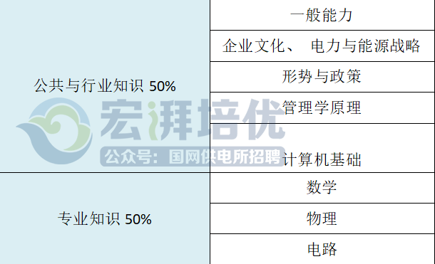 非電工類專業知識占50%,公共與行業知識占50%
