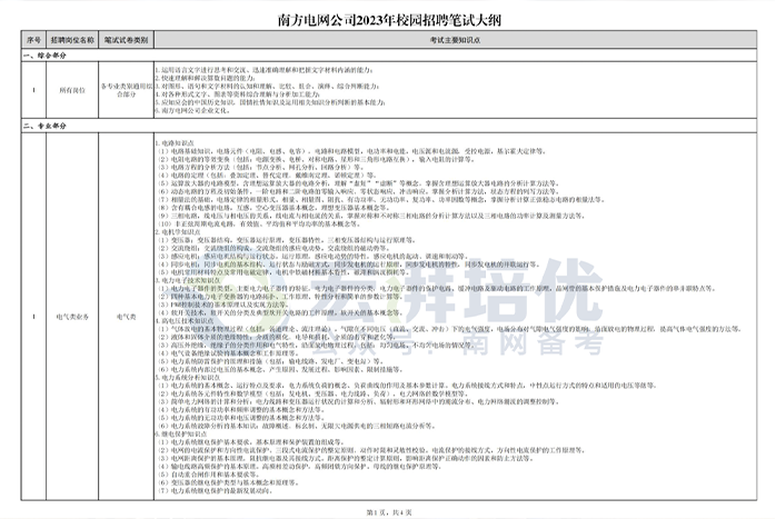 筆試由南方電網(wǎng)公司統(tǒng)一組織實(shí)施。筆試范圍包括綜合知識(shí)(40%)和專業(yè)知識(shí)(60%),其中專業(yè)知識(shí)考試內(nèi)容按照招聘崗位對(duì)應(yīng)的筆試試卷類別進(jìn)行劃分。